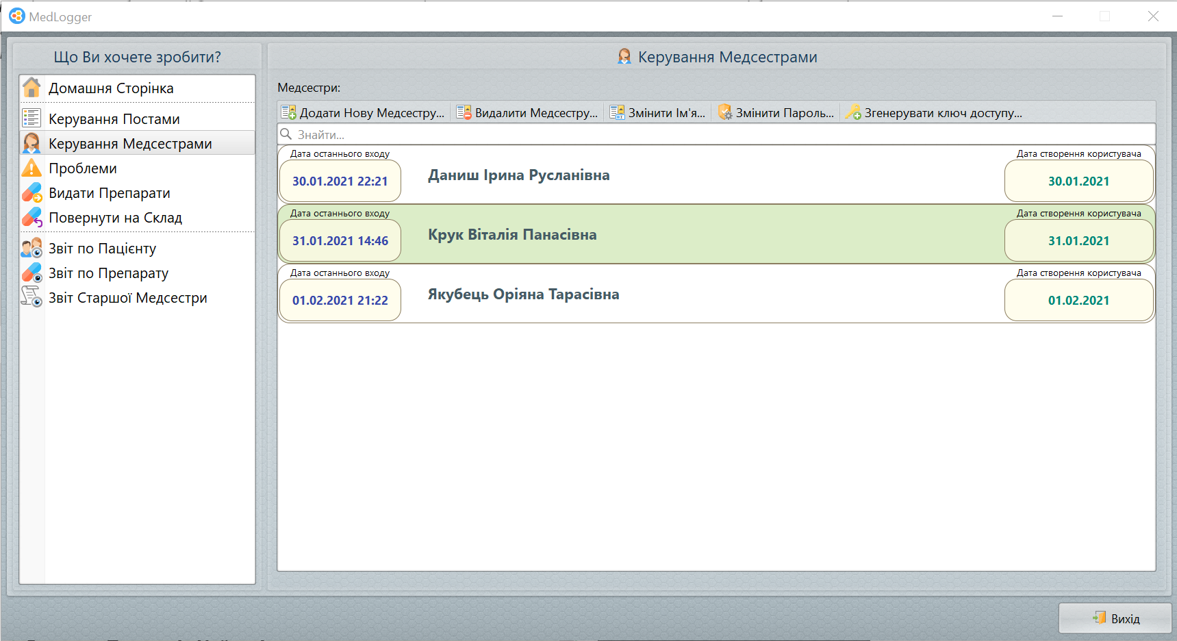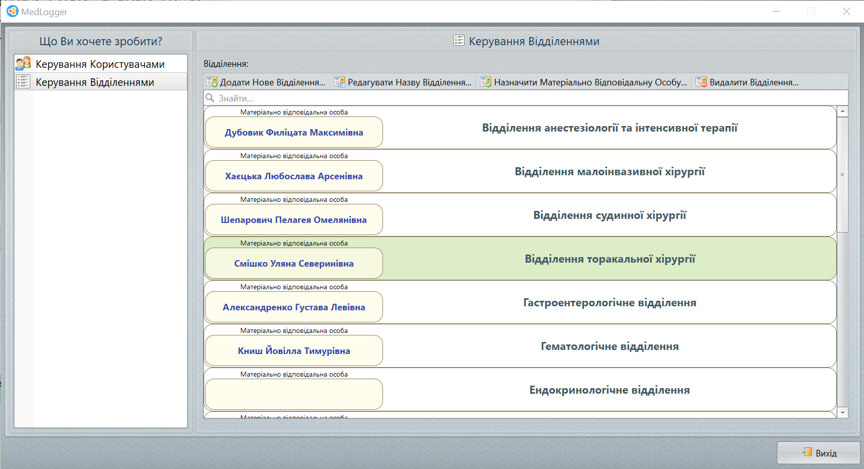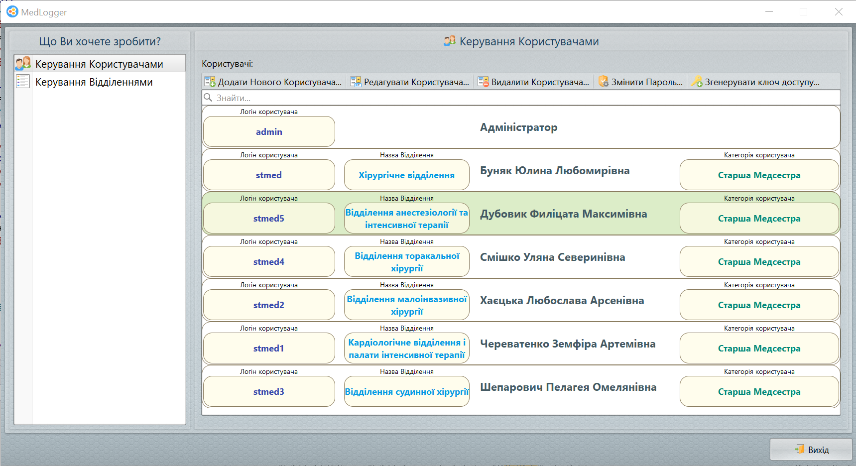 Програма MedLogger є унікальною в своєму класі, оскільки вона була створена, враховуючи всі рекомендації медичного персоналу реального багатопрофільного медичного закладу